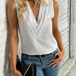 Este top combina sofisticação e versatilidade para elevar qualquer look. Com decote em V profundo e pregas delicadas que criam um efeito alongado e elegante, é perfeito para usar tanto em momentos casuais como em ocasiões especiais.