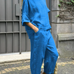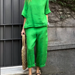 Experimente o look de verão em alta com nosso conjunto de linho - Mia. Composto por um top leve e uma calça descontraída, está disponível em uma variedade de cores de verão modernas e oferece infinitas possibilidades para você expressar seu estilo pessoal.