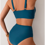 Este fato de banho combina elegância com uma cintura alta lisonjeira, que suavemente oculta a barriga. O design sofisticado e plissado confere um aspeto maduro e elegante. O ajuste confortável e as alças ajustáveis fazem com que se sinta confiante e livre, perfeito para qualquer dia de verão à beira da água.