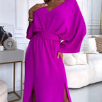 Isabela - Vestido elegante roxo de manga longa com decote em V