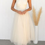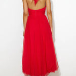 • Corte elegante: A saia longa e as costas cobertas conferem ao vestido um aspecto sofisticado e refinado.