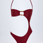 Domine a moda de resort. O fato de banho perfeito para dias de praia ou clubes de praia que se transformam em noites amenas, este fato de banho bandeau é feito de um tecido de natação em jersey elástico premium que esculpe e molda a sua figura. É destacado com um recorte lateral curvado e um pequeno recorte no busto, ancorado com acessórios em tom dourado martelado e delicadas aplicações de contas.