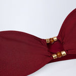 Fato de Banho Bandeau com Aplicações de Contas em Cereja Escura