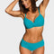 Descobre o biquíni que combina elegância e bem-estar em cada detalhe. Com um design cruzado na parte de cima e cueca de cintura média com ligeiro franzido, realça as curvas de forma subtil e sofisticada.