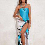 Descubra a essência da elegância da praia com este magnífico conjunto, concebido para uma cobertura excecional da barriga que realça e emagrece a sua silhueta.