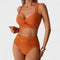 Entre no verão com este elegante biquíni de duas peças, desenhado para favorecer e oferecer suporte. As cuecas de cintura subida proporcionam um ajuste confortável e modelador, realçado por um elegante drapeado, enquanto o top com detalhe em torção acrescenta um toque sofisticado. Confeccionado em tecido macio e de secagem rápida, este biquíni garante que se sinta confiante e descontraída na praia ou à beira da piscina. Perfeito para quem aprecia uma silhueta intemporal com um toque moderno.