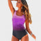 Este fato de banho une o melhor da simplicidade com um toque de ousadia. O degradé vibrante em tons de roxo e preto cria um visual moderno e feminino, perfeito para destacar-se com sofisticação à beira-mar ou na piscina. Com alças largas e um corte que valoriza a silhueta, é ideal para quem procura conforto sem abdicar do estilo. Seja a caminhar na areia ou a nadar com confiança, este modelo é o seu aliado para um verão cheio de atitude.
