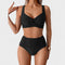 Sente-te confiante e sofisticada em cada mergulho. Este biquíni preto de cintura subida com top estruturado combina estilo intemporal com um corte pensado para valorizar a tua silhueta. A sua textura drapeada e o detalhe torcido no top oferecem um toque de elegância discreta, ideal tanto para relaxar à beira-mar como para um passeio de verão à beira da piscina.