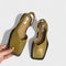 Estas sandálias de design arrojado e formato de bico quadrado são a escolha ideal para quem quer marcar a diferença sem abdicar do conforto. Com um tom verde oliva sofisticado e elástico no calcanhar para um ajuste perfeito, combinam modernidade e praticidade num só modelo. A sola preta contrasta com elegância, e o interior acolchoado garante uma sensação suave ao longo do dia. Um verdadeiro statement de moda para mulheres confiantes.