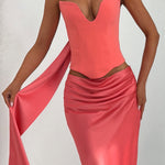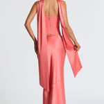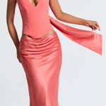 Envolva-se com estilo com nosso Cachecol Sybil na vibrante cor Rosa Coral. Feito de cetim luxuoso, este cachecol não só adiciona um toque de cor a qualquer look, mas também combina perfeitamente com nosso Corset Kamiyah e Saia Maxi Bernadette. Leve seu visual além do básico com este acessório divertido e versátil.