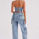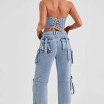 Estamos apaixonados por calças cargo de denim! Apresentamos a peça IT da nova temporada, a calça cargo Brooklyn, inspirada na estética descolada dos anos 00. Com um corte oversized, estilo de perna larga e detalhes de bolso, são feitas com nosso novo tecido de denim premium. Mantenha a revival dos anos 2000 real e dobre seu denim com o corset Yasie.