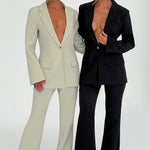 Diga olá à alfaiataria suave com a calça Hazel, um design sob medida deslumbrante com cintura alta e leve abertura na barra. Combine com o blazer Hazel correspondente, saltos transparentes e um coque alto e liso.