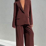 Diga olá para a alfaiataria suave com as calças Noa, um design relaxado com barra larga. Combine com a jaqueta Noa correspondente, saltos transparentes e um coque alto e elegante.