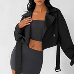 Apresentamos nosso luxuoso casaco para complementar todos os looks. Cortado de nosso tecido premium e de alta resistência que confere estrutura e forma, este design de trench possui um cinto que ajusta a cintura e tem um comprimento cropped super estiloso. Esta peça clássica de sobreposição funciona muito bem na transição entre as estações. Use o seu jogado sobre o seu conjunto favorito para arrasar na vibe de garota descolada.