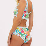 Mit seinem zarten Blumenmuster und dem dehnbaren Stoff bietet dieser Bikini sowohl Komfort als auch eine schmeichelhafte Passform. Sein unterstützendes Design garantiert Vertrauen und Stabilität, egal ob Sie am Pool entspannen oder aktiv im Wasser sind.