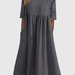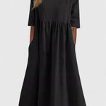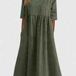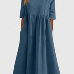 • Lisonjeiro & Funcional: Apresenta um decote redondo, cintura levemente ajustada e bolsos laterais para facilidade no dia a dia.