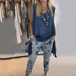 Conteúdo da entrega: 1 * Conjunto de duas peças para mulheres: Blusa sem mangas e calças estampadas