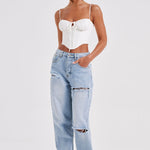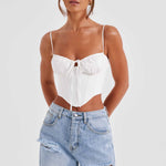 Precisamos de TODOS os corsets fofos no nosso guarda-roupa agora. Clara é divertida e provocante, feita em nosso algodão premium com um copo com aro para moldar o busto. É finalizada com um corpo com aros para afinar a cintura e uma barra levemente arredondada na frente. Combine com seu jeans favorito e joias minimalistas.