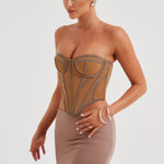Elegante, sexy e feito com nosso delicado tecido de lingerie em malha, o que não amar no corset Santanna? Com nosso design de aros que realmente esculpe seu torso e cintura, o Santanna possui um busto com copas e uma barra assimétrica que valoriza. Adoramos combiná-lo com uma de nossas icônicas saias maxi e sapatos mule.