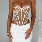 Elegante, sexy e feito em nosso delicado tecido de lingerie em rede, o que não amar no corset Santanna? Apresentando nossa estrutura de suporte característica para realmente esculpir seu torso e cintura, o Santanna possui um busto com copas e uma barra curva que valoriza. Adoramos combiná-lo com uma de nossas icônicas saias maxi e sapatos mule.