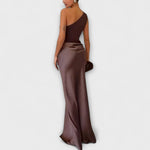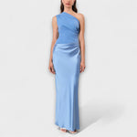 Elegante Vestido Maxi de Festa com Um Ombro Plissado