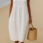 Fácil de Combinar: Com tons suaves e um corte sem mangas, o vestido combina perfeitamente com sandálias, ténis ou chapéus de sol.