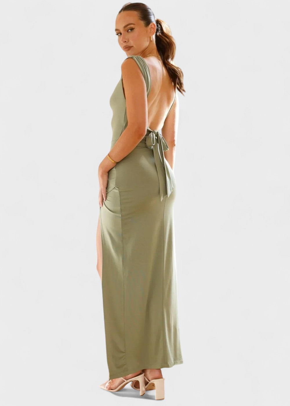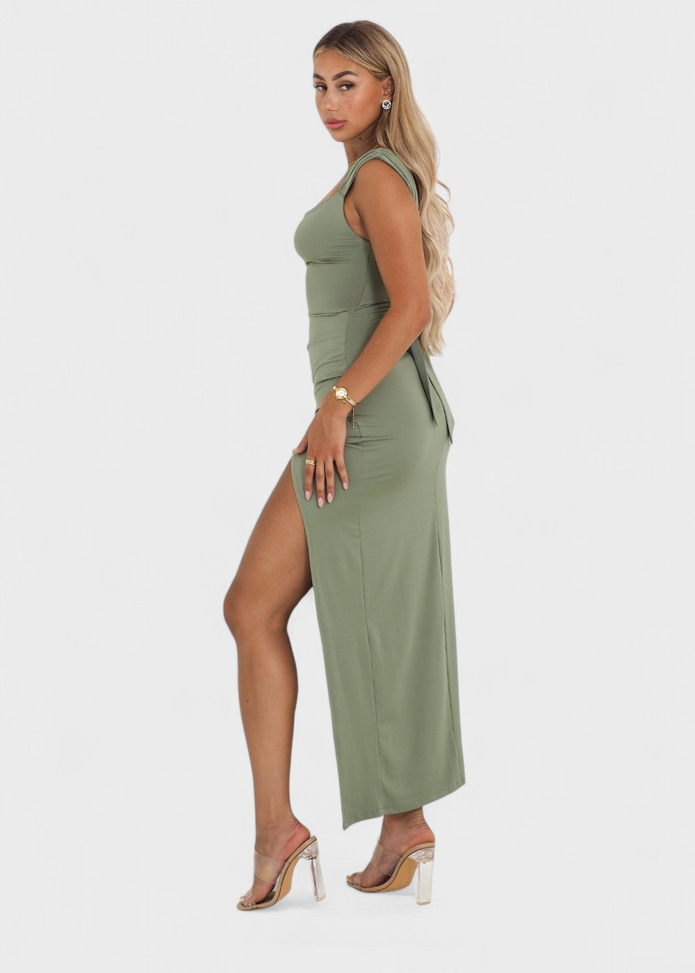 O vestido com fenda cingida e folhos é um must-have moderno para apresentações com estilo. Com o seu corte justo, a sofisticada fenda lateral e os folhos drapeados, exibe a sua figura na perfeição - seja para eventos especiais ou para uma saída à noite elegante.