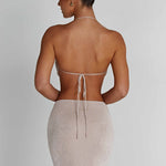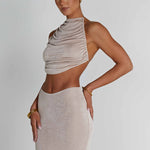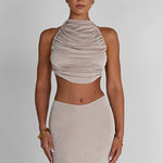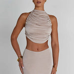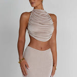 Sinta-se radiante e deslumbrante com o top Fifi, feito em nosso jersey de alto brilho que possui um lindo brilho. Este design sem costas se fecha com um laço nas costas e é complementado com um gola alta e um design drapeado por toda a parte da frente. Combine o seu com a saia Fifi correspondente e um nó elegante.