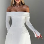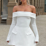 Com um decote bardot elegante, off the shoulder, e mangas longas, o top Geneva foi feito para brunches chiques, encontros noturnos e muito mais. O top é ajustado ao corpo e fica incrível combinado com a mini Grace.