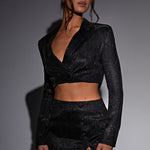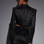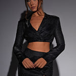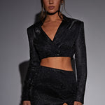 Diga olá ao terno luxuoso dos seus sonhos. Feita em nosso tecido brilhante, a Stefania faz parte da nossa nova linha de alfaiataria premium, apresentando um corte cropped, ajuste regular com colarinho e fechamento frontal com botão. Combine com a saia Stefania para uma perfeição de alfaiataria brilhante.