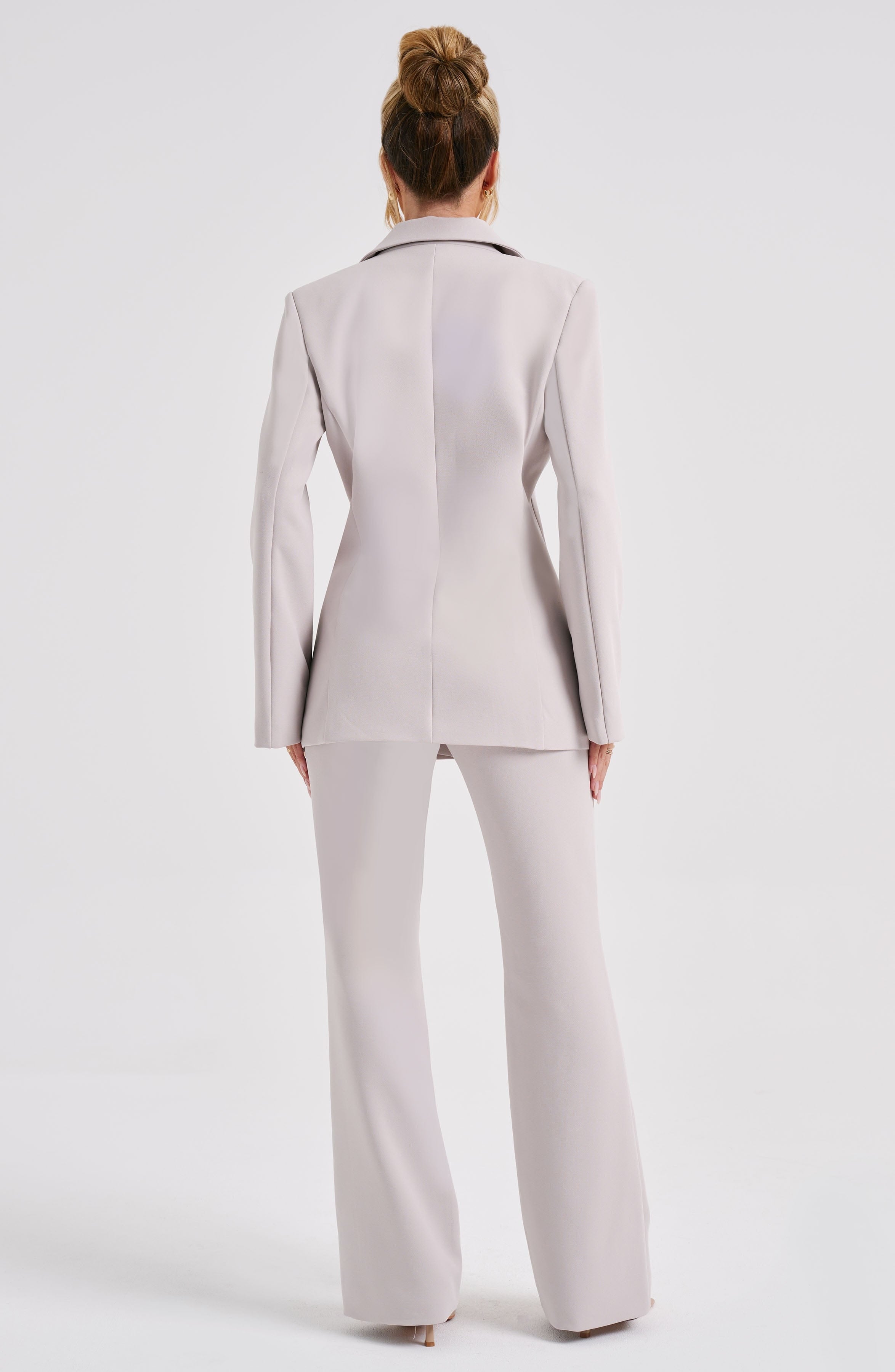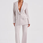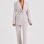 Diga olá ao tailoring suave da jaqueta de terno Hazel, um design deslumbrante com lapela dupla e um cinto envolvente chique. Combine-a com as calças Hazel correspondentes, saltos transparentes e um coque alto e liso.