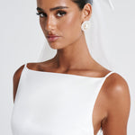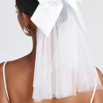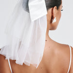 Eleve seu visual de noiva com o Laço de Cabelo Sposa, um acessório chique e romântico perfeito para sua despedida de solteira, chá de panela ou jantar de ensaio. Feito de cetim estruturado luxuoso, este laço oversized na cor marfim exala elegância, enquanto o delicado véu de tule adiciona um toque lúdico e etéreo.