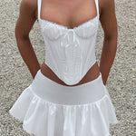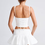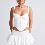 Eleve qualquer look de noiva com o divertido skort Lani. Totalmente forrado para conforto, esta saia de algodão premium tem um ajuste de cintura média com shorts embutidos e uma sobreposição de saia. É completada com detalhes em renda e pregas para adicionar volume à saia. Faça uma combinação perfeita e use com o corpete Kinleigh.