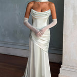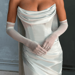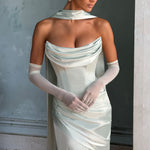 Eleve seu visual com as Luvas Eli em Menta. Estas elegantes luvas até o cotovelo são feitas de malha transparente e elástica para um ajuste perfeito. Projetadas para combinar perfeitamente com o Cachecol Sybil e o Vestido Maxi Kensington em Menta.