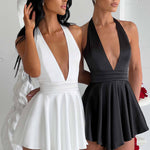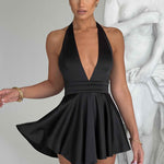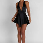 Gaia é ultra feminina, divertida e a peça perfeita para coquetéis com as amigas, noites de encontro e férias. Com um decote profundo e alças halter, este design se amarra em volta do corpo nas costas para ajustar sua cintura. Nós amamos especialmente os shorts fluidos e drapeados com barra assimétrica que proporcionam um movimento bonito e destacam pernas incríveis.