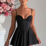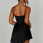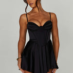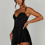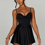 O macacão mais bonito do momento, Saffron é lindamente projetado com shorts drapeados e leves feitos no mais deslumbrante cetim stretch para seu conforto. Com um corpo de corpete que afunila a cintura e copas plissadas com aro para emoldurar o busto, é a opção perfeita para noites românticas e drinks com as amigas. Basta adicionar cabelos macios e texturizados, mules de salto e ir.