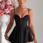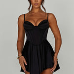 O macacão mais bonito do momento, Saffron é lindamente desenhado com shorts drapeados e leves feitos no mais deslumbrante cetim stretch para seu conforto. Com um corpo de corset que ajusta a cintura e copas plissadas com aro para emoldurar o busto, é a opção perfeita para noites românticas e drinks com as amigas. Basta adicionar cabelos suaves e texturizados, mules de salto e sair.
