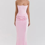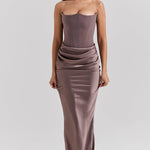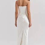 O vestido de cetim com uma silhueta de ampulheta é um vestido feito para momentos inesquecíveis. Com o seu design sem ombros, corte cingido e material de cetim luxuoso, cria uma aparência dramática - sem ser exagerado. Quer se trate de um look de passadeira vermelha, de uma gala ou de um jantar elegante - Madison é pura classe.