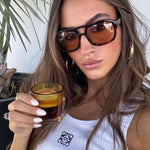 Descubra os Óculos de Sol Zahra: um óculos de piloto inspirado no vintage com lentes na cor canela que complementam qualquer look!