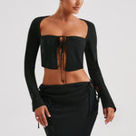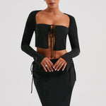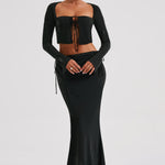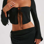 Com um sutil toque de brilho e detalhes de flores de strass que brilham conforme você se move, o top Reo deve estar no topo da sua lista de desejos nesta temporada. Com mangas longas e decote profundo, o design é finalizado com detalhes de laço no busto e nas bainhas das mangas. Use com a saia Tana e brilhe a noite toda.