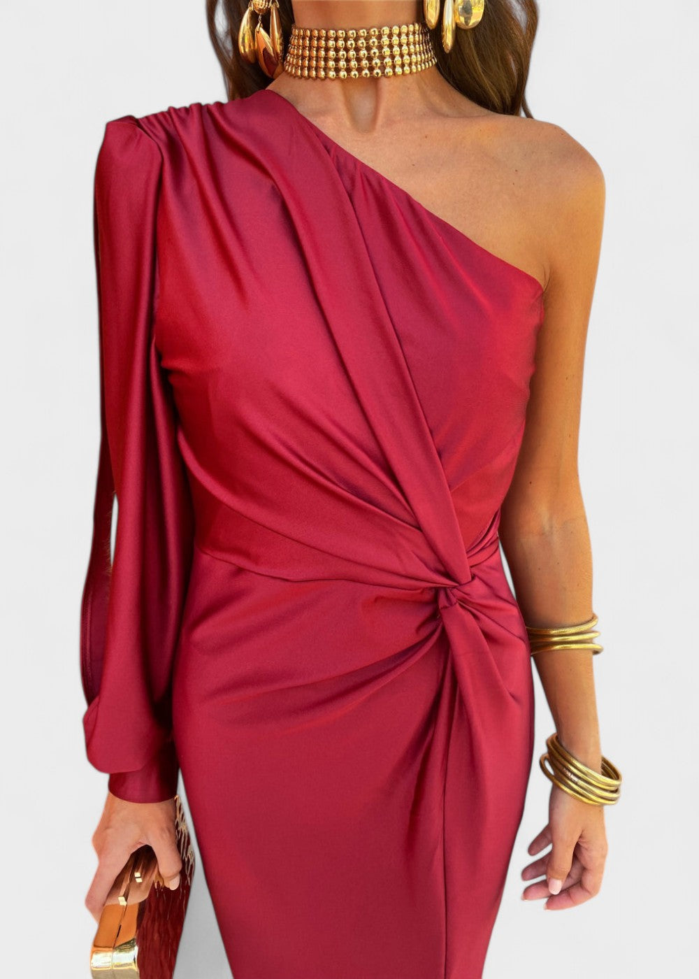 • Design de um ombro só: corte assimétrico para uma linha de ombros elegante.
