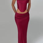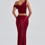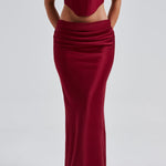 Oh, ela é luxo! Garantida para fazer você ser o centro das atenções, a saia maxi Bernadette é confeccionada em nosso cetim stretch premium, cortada na diagonal para um caimento bonito. Esta peça única tem um detalhe de pregas na frente e uma costura diagonal no joelho. Combine com a blusa Audra para um look sonhador e luxuoso.