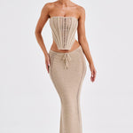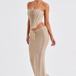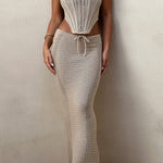 Estamos obcecados pela saia maxi Chayenne, um lindo design de crochê que é perfeito para dias e noites quentes. Este modelo apresenta um ajuste de cintura média, sentando-se um pouco mais baixo na cintura, com detalhe de ilhós contornado e cintura com cordão. Combine com o Corset Carly para uma combinação perfeita.