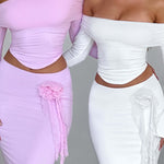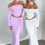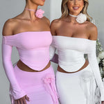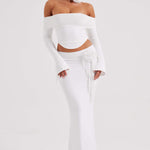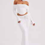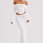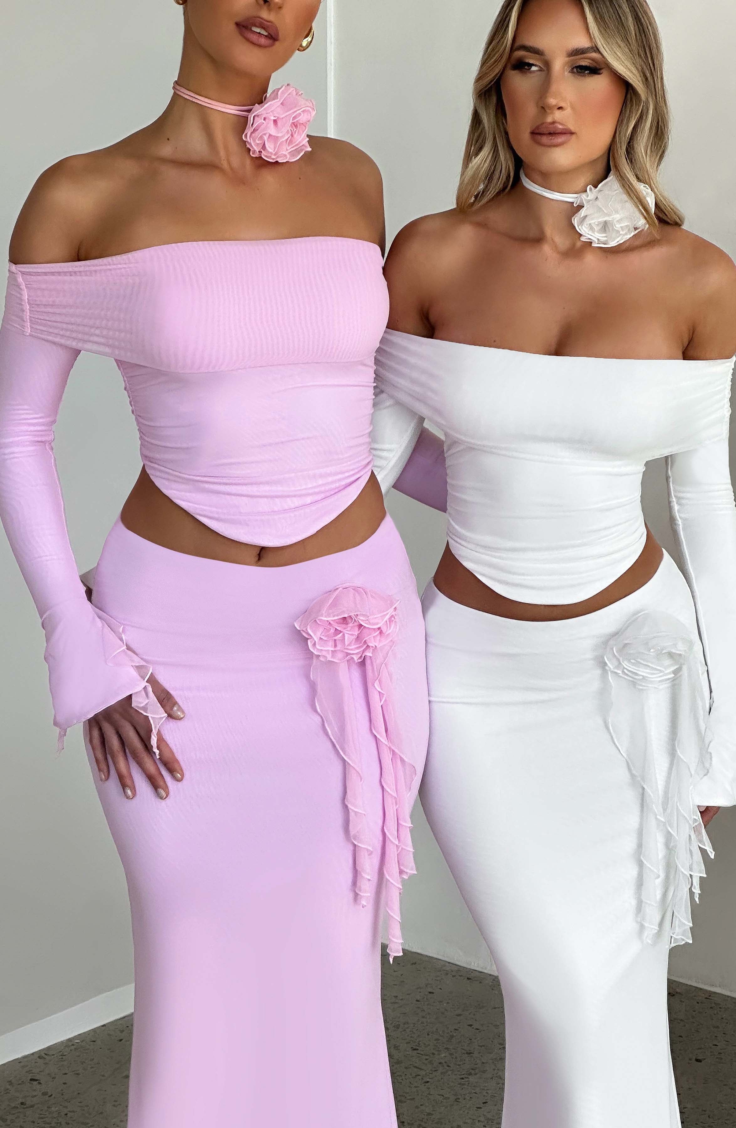A Deema é o conjunto que está na mente de todos. Com um ajuste super escultural e justo ao corpo, este design maxi é feito de nossa malha dupla de alta qualidade com uma barra levemente evasê, ajuste de cintura alta e detalhe de corsage de flores com babados. Combine com a saia Deema para uma combinação perfeita.