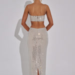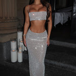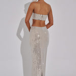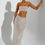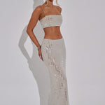 Entregue-se ao luxo com nossa Saia Maxi Dimity na cor Nude. Feita de malha elástica premium e totalmente forrada para conforto, esta saia em formato coluna apresenta grandes strass quadrados hotfix elegantemente incrustados no tecido. Finalizada com um fecho de zíper invisível, esta saia de comprimento maxi é ao mesmo tempo sofisticada e exclusiva. Use com o top cropped Dimity e brilhe a noite toda.