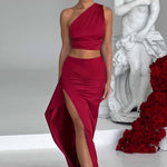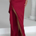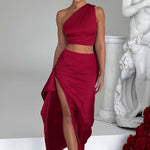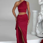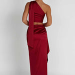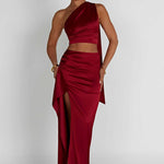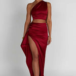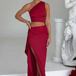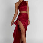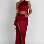 Abraçe sua elegância na saia maxi Halsey, feita de nosso luxuoso tecido de cetim que se ajusta lindamente ao corpo. Com uma fenda alta na coxa e um bonito detalhe de drapeado de um lado, combine a sua com o cropped Halsey para o próximo grande encontro na sua agenda.