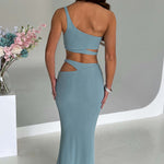 O caimento moderno e contemporâneo da Kaela é inigualável, apresentando uma cintura assimétrica com detalhes recortados. Com um design de cintura alta e comprimento maxi que arrasta no chão, a saia Kaela é feita em nosso luxuoso tecido canelado texturizado que abraça as curvas. Combine-a com brincos de ouro minimalistas, um coque alto e o cropped Kaela correspondente.