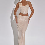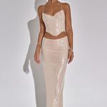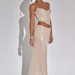 Junte-se à Elite com a Larisa, uma saia maxi de lantejoulas brilhantes que fica um pouco mais baixa na cintura e contorna a figura. Brilhe a noite toda com o corpete combinando Larisa.