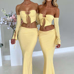 As linhas fluidas e deslumbrantes da Tana garantirão que todos os olhares estejam sobre você nesta temporada. Projetada em nosso cetim georgette leve com um brilho impressionante, a saia Tana se ajusta suavemente à figura, abrindo-se na saia maxi que toca o chão. A saia é complementada com detalhes de laço na lateral e uma cintura super baixa. Combine-a com o top Tana, saia e brilhe.