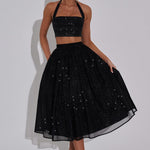 Oh, ela é brilhante! Você não encontrará nada melhor do que nossa malha brilhante exclusiva, um tecido super macio que é tão bom quanto parece. A saia Alani é complementada com uma saia cheia e franzida feita de tule para aquele visual extra volumoso. Faça uma combinação de estilo dos sonhos com a saia midi Alani e o cropped.